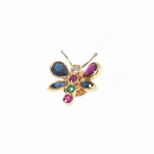 SPILLO A FORMA DI FARFALLA CON PIETRE DI COLORE E DIAMANTE in oro giallo e bianco 18kt, impreziosito da zaffiri [..]