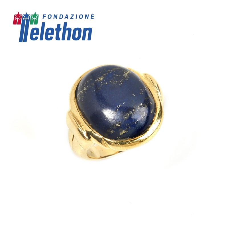 GRANDE ANELLO CON LAPISLAZZULI in oro giallo 18kt, impreziosito da un lapislazzuli taglio cabochon di ct 21x16x7 circa, punzoni 750 e del fabbricante, mis. 58, gr. 19