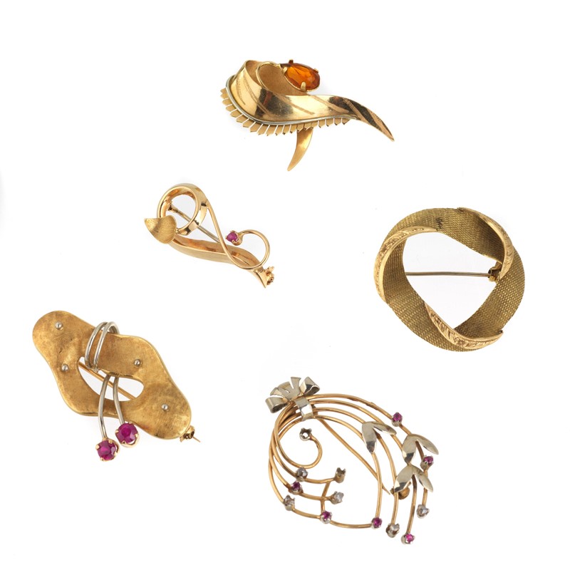 in oro giallo, rosa e bianco 18kt, di varie dimensioni, realizzate a forma di tralci fioriti e a nastro, punzone 750, gr. 28