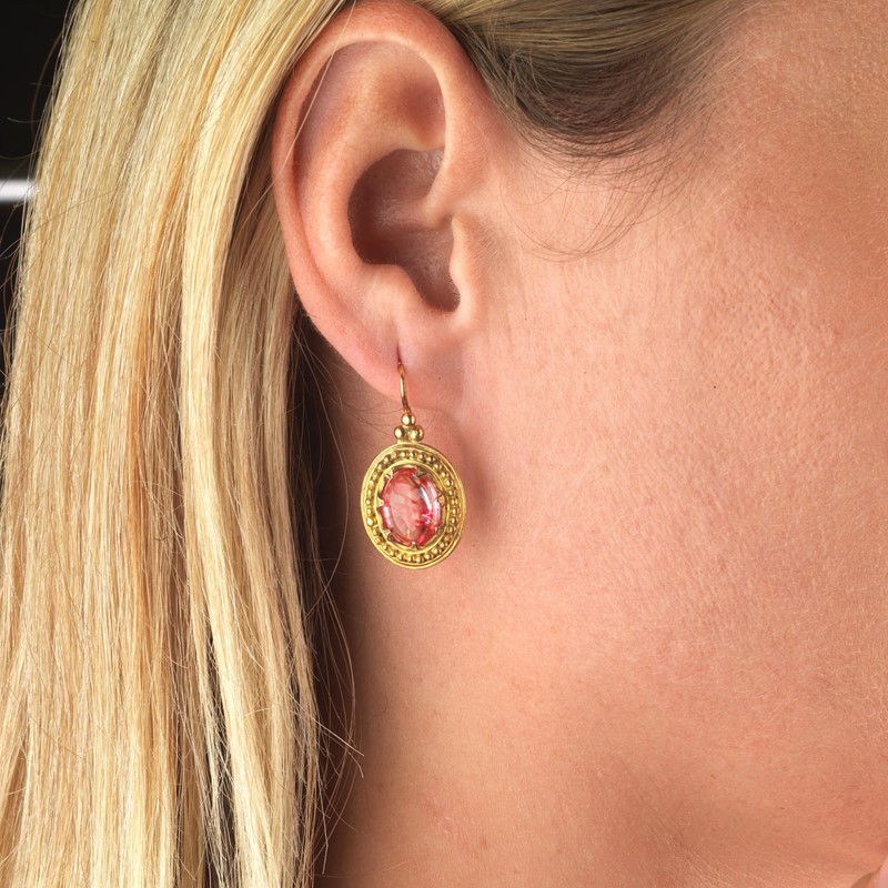 SYNTHETIC STONE DROP EARRINGS IN 18KT YELLOW GOLD