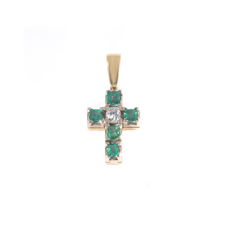 PENDENTE A FORMA DI CROCE CON DIAMANTE E SMERALDI