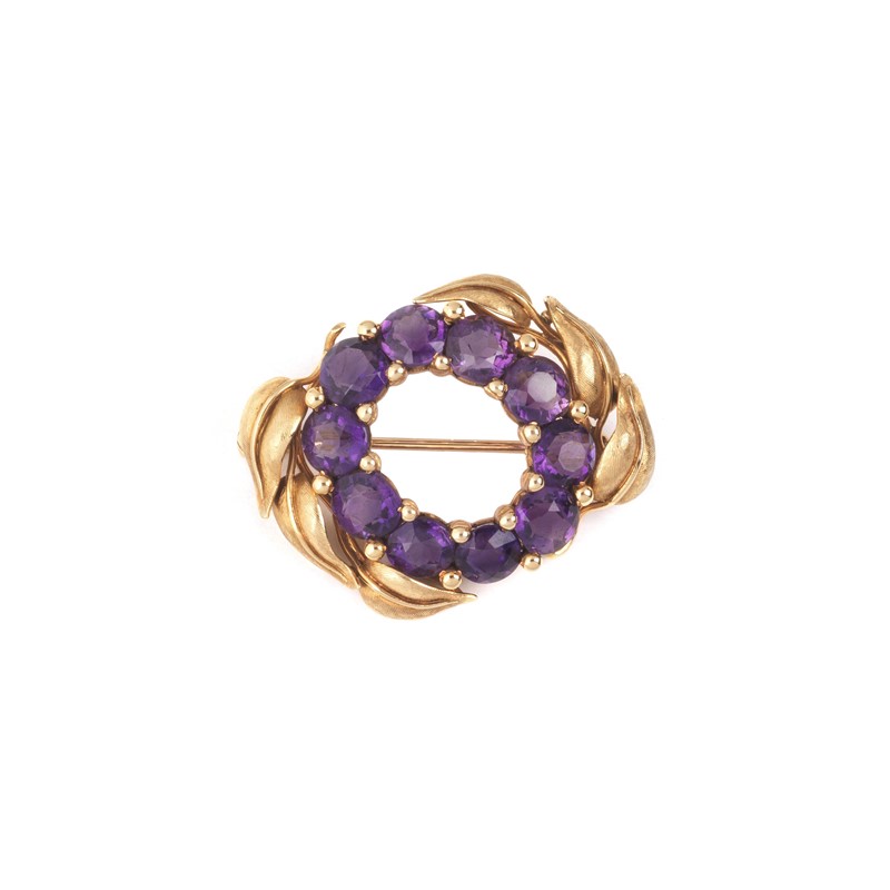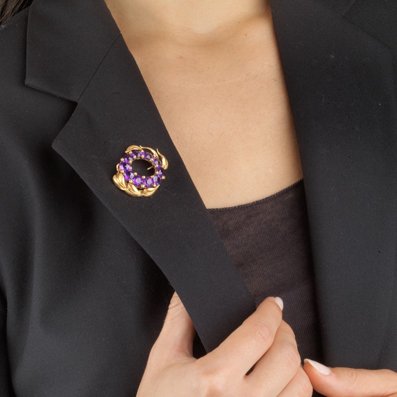 AMETHYST CLUSTER BROOCH IN 18KT YELLOW GOLD