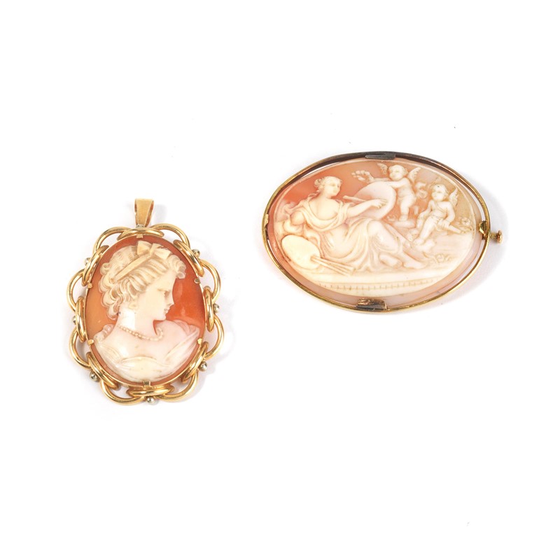 CAMEO PENDANT AND BROOCH IN 18KT YELLOW GOLD