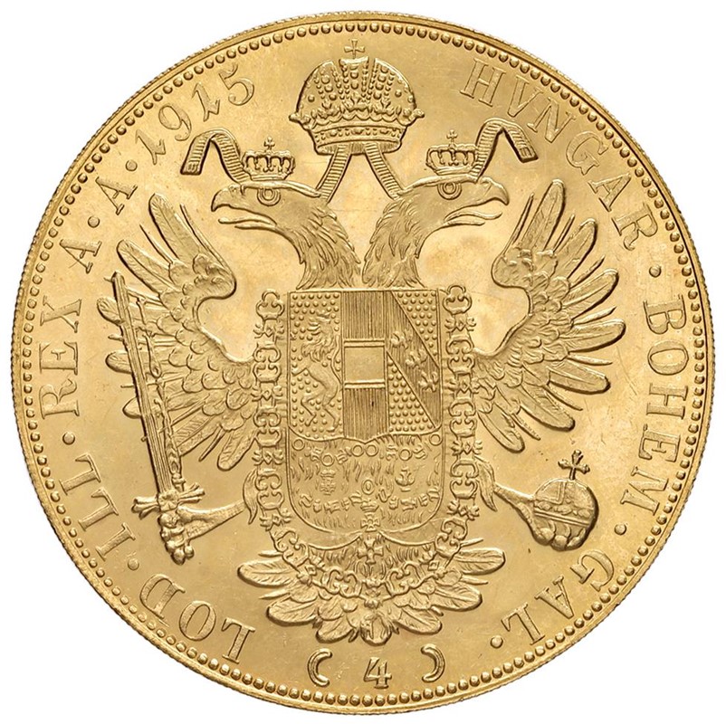 AUSTRIA. FRANCESCO GIUSEPPE (1848-1916) 4 DUCATI 1915 RICONIO