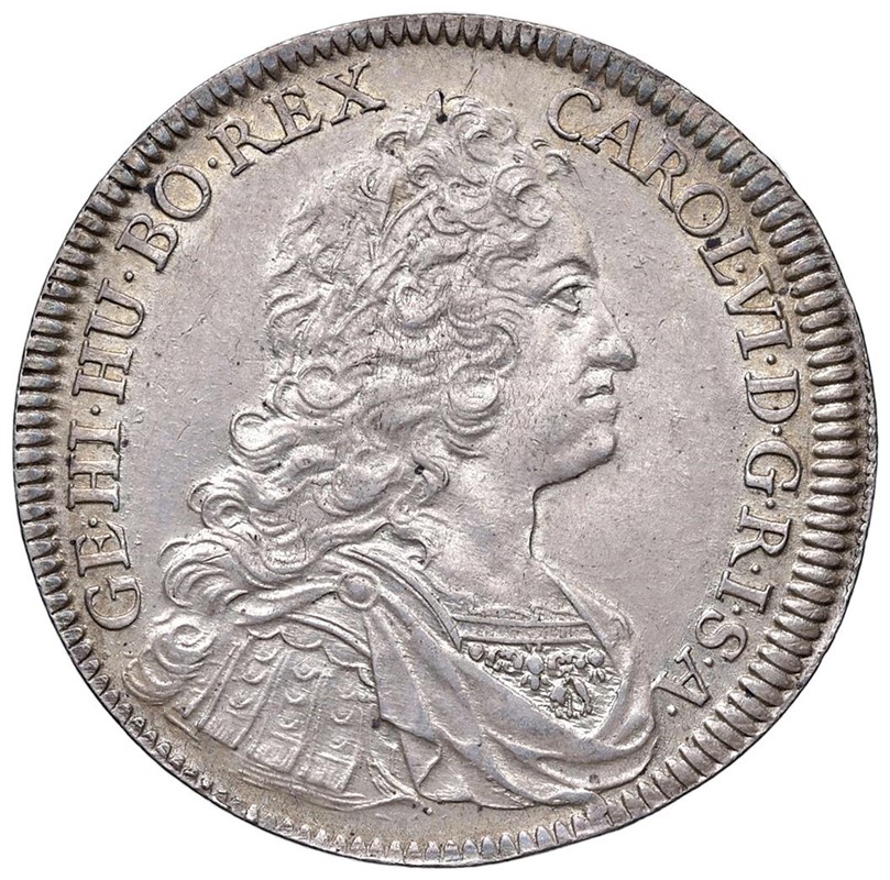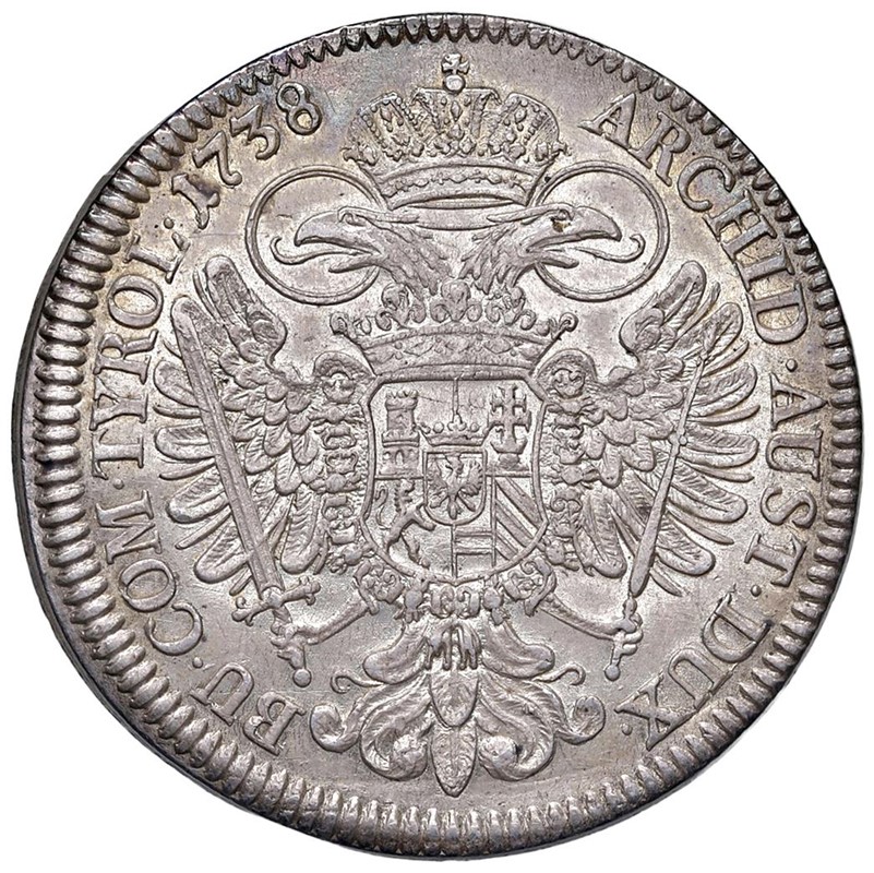 AUSTRIA. SACRO ROMANO IMPERO. CARLO VI (1711-1740) TALLERO 1738 HALL Ar gr. 28,27 Busto laureato a d. R/ Aquila bicipite coronata e con stemma sul petto Delicata patina, SPL Light tone, EF