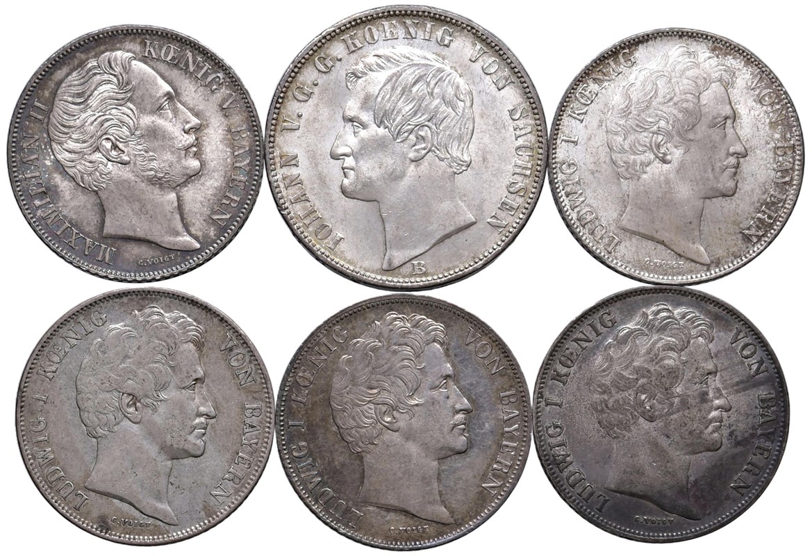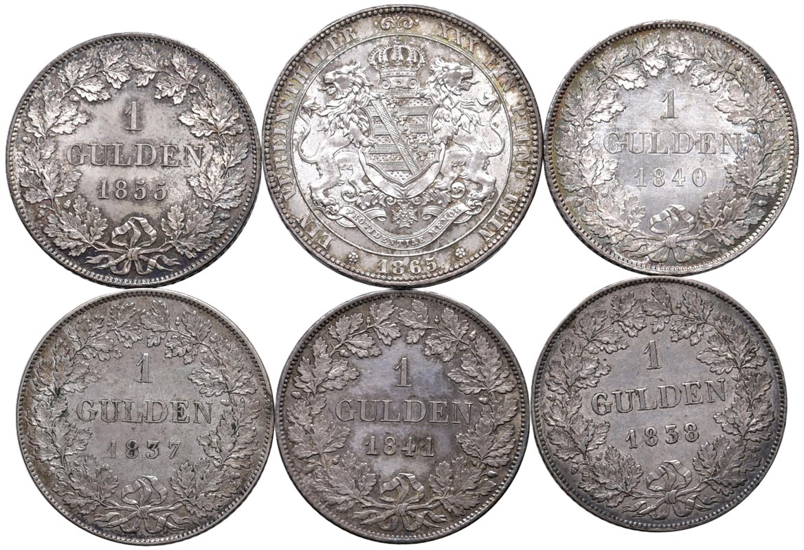 CINQUE GULDEN AUSTRIACI (1837, 1838, 1840, 1841, 1855) E UN TALLERO SASSONE 1865