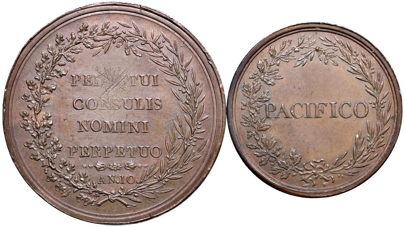 Perpetui consulis anno X (1802) gr. 13,20 mm. 30 op. George; Pacifico 1802 gr. 8 mm. 23