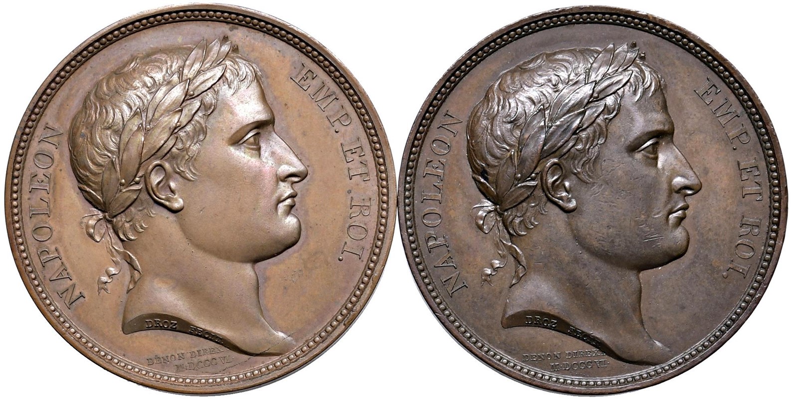Venezia riunita all’Italia 1805 op. Droz-Brenet & Denon gr. 35,60 mm. 40; Pace di Presburgo 1805 op. Droz-Andrieu & Denon