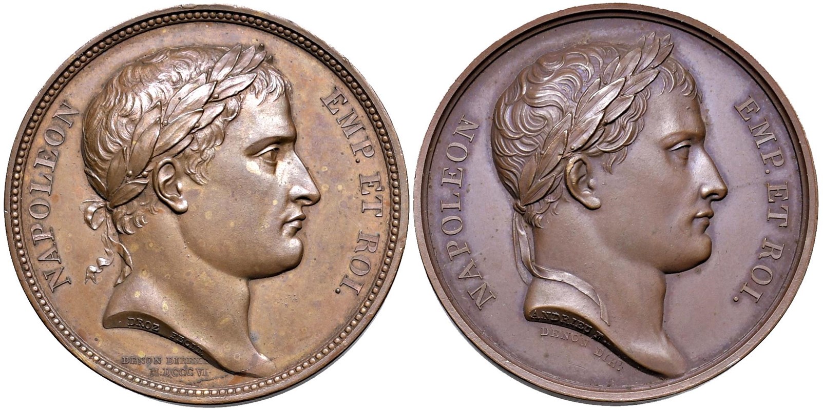 La conquista dell’Istria 1806 op. Droz-Brenet & Denon gr. 33,90 mm. 40; Occupazione di Amburgo 1806 op. Andrieu & George gr. 34,80 mm. 40