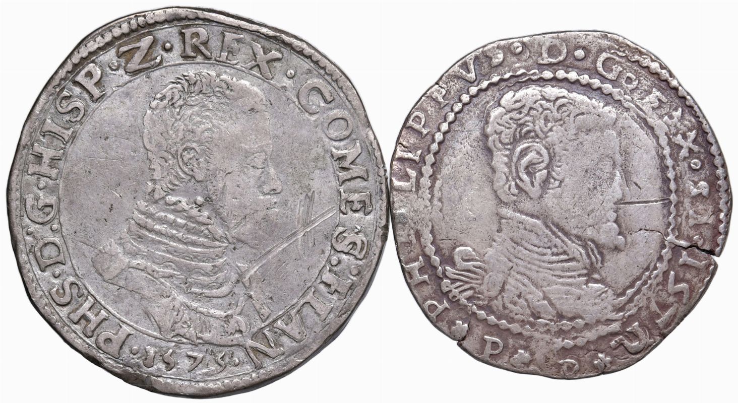 DUE MONETE IN ARGENTO DI FILIPPO II DI SPAGNA