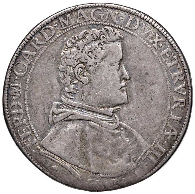 FIRENZE. FERDINANDO I DE’ MEDICI (1587-1609) PIASTRA 1588 Ar gr. 32,13 Busto cardinalizio a d. R/ Croce di S. Stefano. MIR 201/3 Pucci 6 Rara. Delicata patina, BB/SPL. Rare. Light tone, VF/EF.