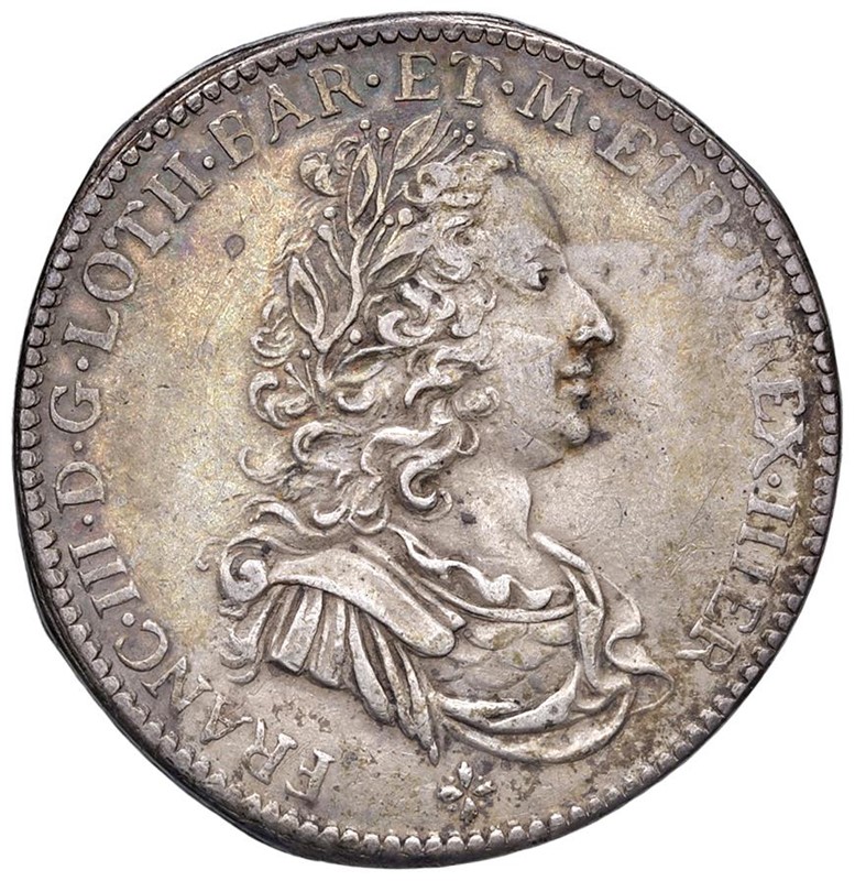 FIRENZE. FRANCESCO II DI LORENA (1737-1765) MEZZO FRANCESCONE 1739 Ar gr. 13,58 Busto a d. R/ Stemma. MIR 355/2 Pucci 97/109 Raro. Delicata patina di monetiere, BB/SPL. Rare. Light cabinet tone, VF/EF.