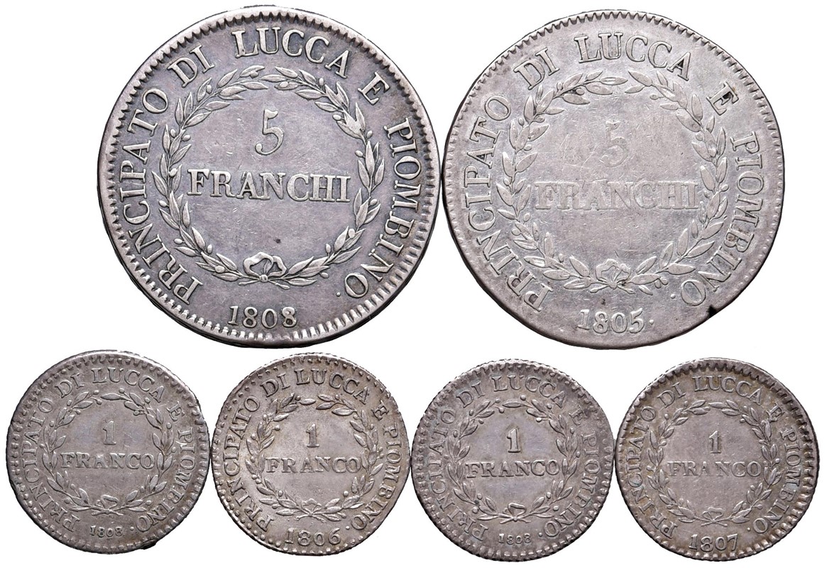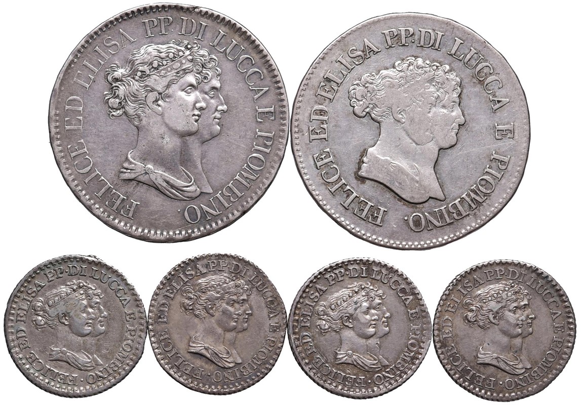 LUCCA. SEI MONETE DI ELISA BONAPARTE E FELICE BACIOCCHI