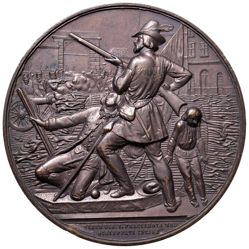 MEDAGLIA IN BRONZO 1858 A RICORDO DELLE 5 GIORNATE DI MILANO OMAGGIO DEI MILANESI [..]