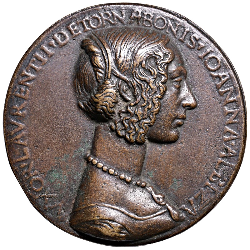 MEDAGLIA IN BRONZO DI GIOVANNA DEGLI ALBIZI TORNABUONI (1468-1488) NOBILE FIOREN [..]