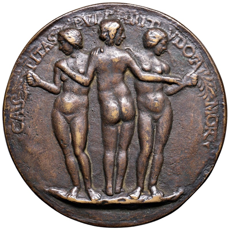 MEDAGLIA IN BRONZO DI GIOVANNA DEGLI ALBIZI TORNABUONI (1468-1488) NOBILE FIORENTINA Ae mm 80 Busto a d. R/ Le tre grazie Hill. 1021 Fusione postuma q.SPL Later cast a.EF