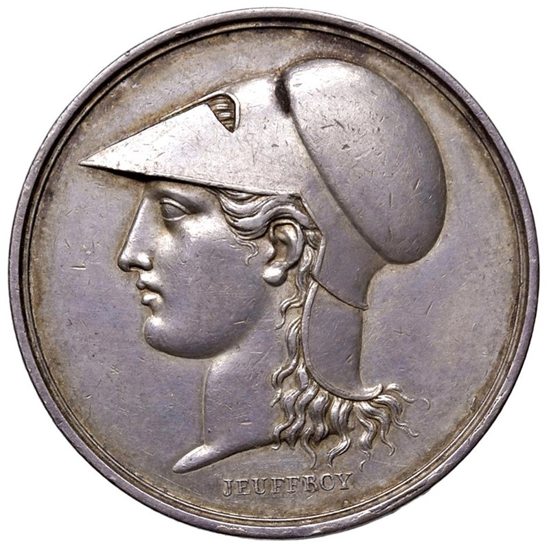 MEDAGLIA NAPOLEONICA IN ARGENTO PER I CORPS LEGISLATIF 1811 OP. JEUFFROY Ar gr. 30,40 mm. 38 Testa elmata a s. R/ Scritta nel giro Rara. Leggera patina, SPL Rare. Light tone, EF