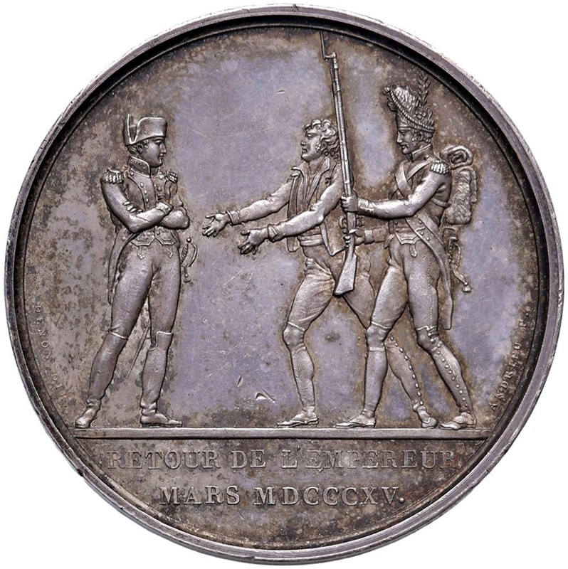 MEDAGLIA NAPOLEONICA IN ARGENTO PER IL RITORNO DELL’IMPERATORE 1815 OP. ANDRIEU [..]