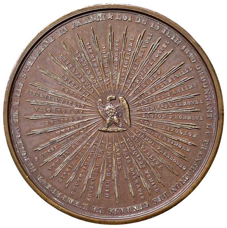 MEDAGLIA NAPOLEONICA IN BRONZO PER LA TRASLAZIONE DELLE CENERI DELL’IMPERATORE DA SANT’ELENA A PARIGI 1840