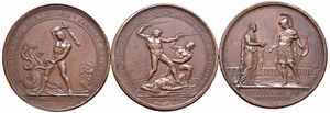 TRE MEDAGLIE NAPOLEONICHE IN BRONZO Battaglia di Millesimo e Dego 1796 opus Lavy, conio italiano, gr. 26,50 mm. [..]