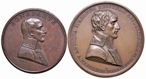 DUE MEDAGLIE NAPOLEONICHE IN BRONZO Perpetui consulis anno X (1802) gr. 13,20 mm. 30 op. George; Pacifico 1802 [..]