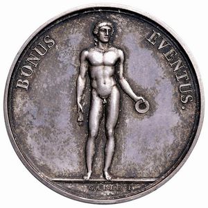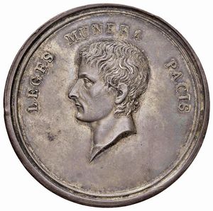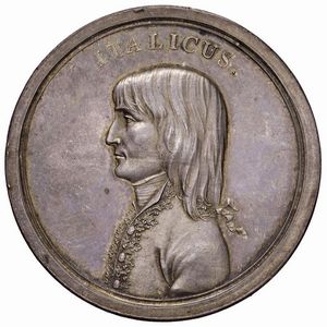 MEDAGLIA IN ARGENTO PER IL RITORNO IN FRANCIA DI BONAPARTE 1799 Ar gr. 16,10 mm. 32 Busto a s. R/ Figura umana [..]
