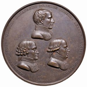 TRE MEDAGLIE NAPOLEONICHE IN BRONZO Visita di Bonaparte al Museo del Louvre 1803 op. Jeuffroy gr. 34,40 mm. 40; [..]