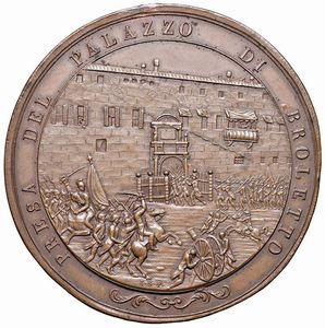 MEDAGLIA PER LA PRESA DEL PALAZZO DEL BROLETTO DI BRESCIA OPUS F.J. SALWIRCK Ae gr. 66,50 mm. 63 Scena dell’attacco [..]