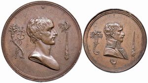 DUE MEDAGLIE NAPOLEONICHE IN BRONZO Concordato tra la Repubblica Francese e lo Stato Pontificio e ristabilimento [..]