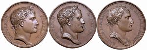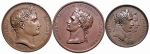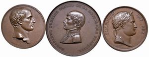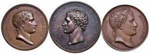 TRE MEDAGLIE NAPOLEONICHE IN BRONZO Napoleone I incoronato a Re d’Italia a Milano 1805 op. Andrieu & [..]