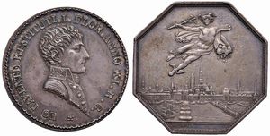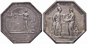 DUE GETTONI OTTAGONALI NAPOLEONICI IN ARGENTO Cassa di sconto del commercio 1798 gr. 35,00 mm. 16,50; Banca di [..]