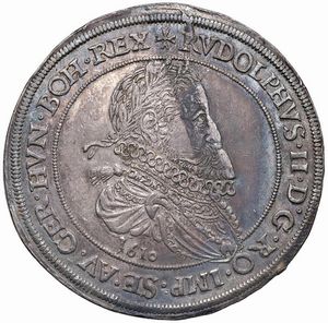 AUSTRIA. SACRO ROMANO IMPERO. RODOLFO II (1576-1612) TALLERO 1610 HALL Ar gr. 28,22 Busto paludato a d. in armatura [..]