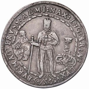 AUSTRIA. SACRO ROMANO IMPERO. MASSIMILIANO III (1590-1618) MEZZO TALLERO 1616 HALL Ar gr. 14,60 Arciduca di fronte [..]