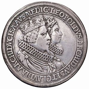 AUSTRIA. TIROLO. LEOPOLDO I ARCIDUCA (1619-1632) DOPPIO TALLERO S.D. (1626) HALL Ar gr. 56,00 Busti di Leopoldo [..]