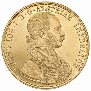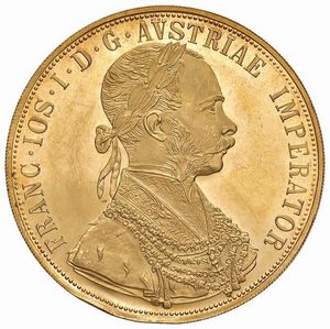 AUSTRIA. FRANCESCO GIUSEPPE (1848-1916) 4 DUCATI 1915 RICONIO Au gr. 14,00 FDC MS