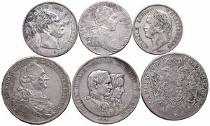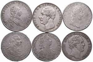 VARI STATI. SEI MONETE IN ARGENTO. Germania (Tallero alla corona di Massimiliano Giuseppe 1822; Tallero di Federico [..]