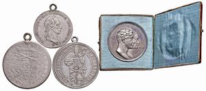 VARI STATI. TRE MONETE CON MONTATURA E UNA MEDAGLIA IN ARGENTO Piastra sede vacante 1656; Tallero 1680 Massimiliano [..]
