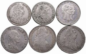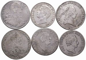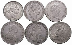 VARI STATI. CINQUE TALLERI (1739, 1763, 1766, 1786, 1816) E UN GULDEN DI FRANCESCO GIUSEPPE 1854 Ar BB VF (6) [..]