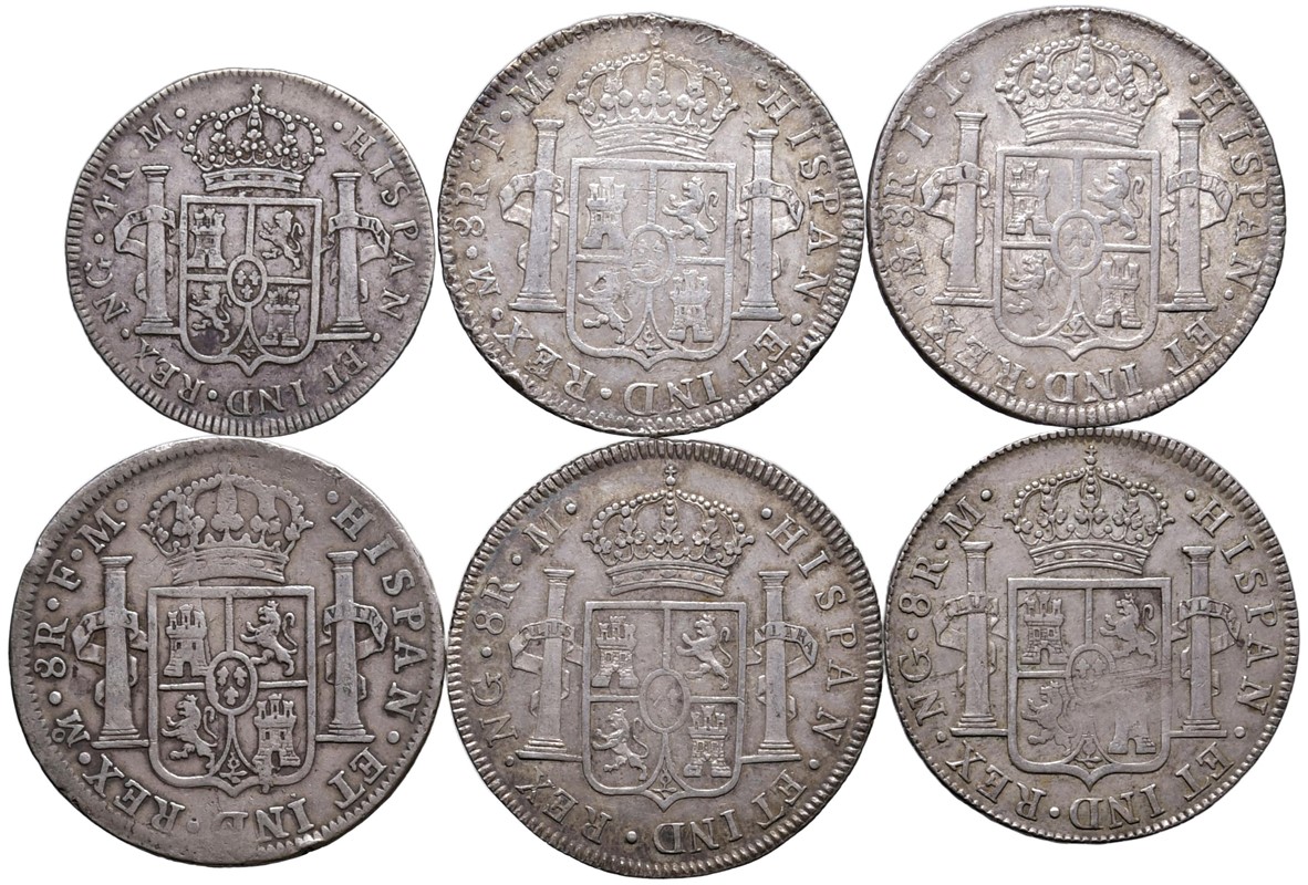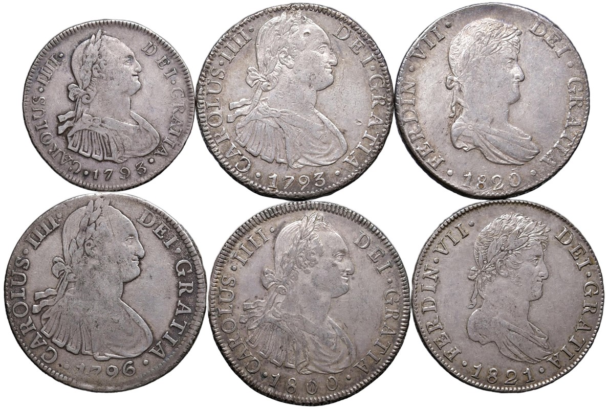Reales da 8 (1793, 1796, 1800, 1820, 1821); Reales da 4 1793