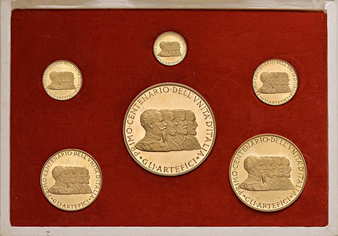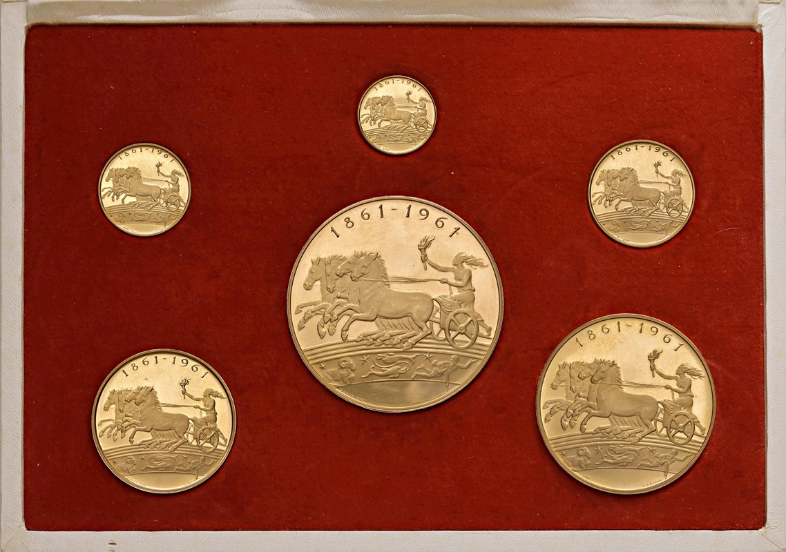 SEI MEDAGLIE IN ORO PER IL PRIMO CENTENARIO DELL’UNITA’ D’ITALIA (1861-1961) OPUS GIAMPAOLI IN ASTUCCIO