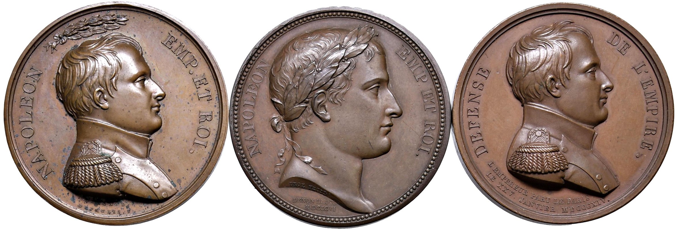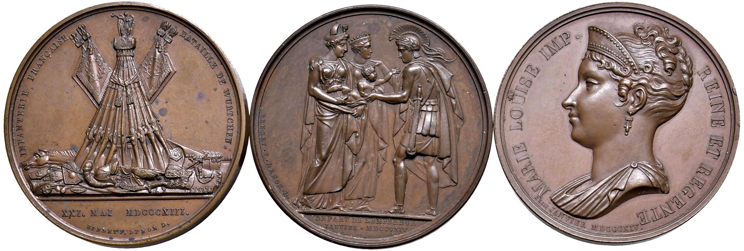 Battaglia di Wurtchen 1813 op. Depaulis & Brenet gr. 29,10 mm. 40; Reggenza di Maria Luisa 1814 op. Depaulis gr. 38,5 mm. 40; Partenza dell’Imperatore da Parigi 1815 op. Droz-Brenet gr. 38,5 mm. 40