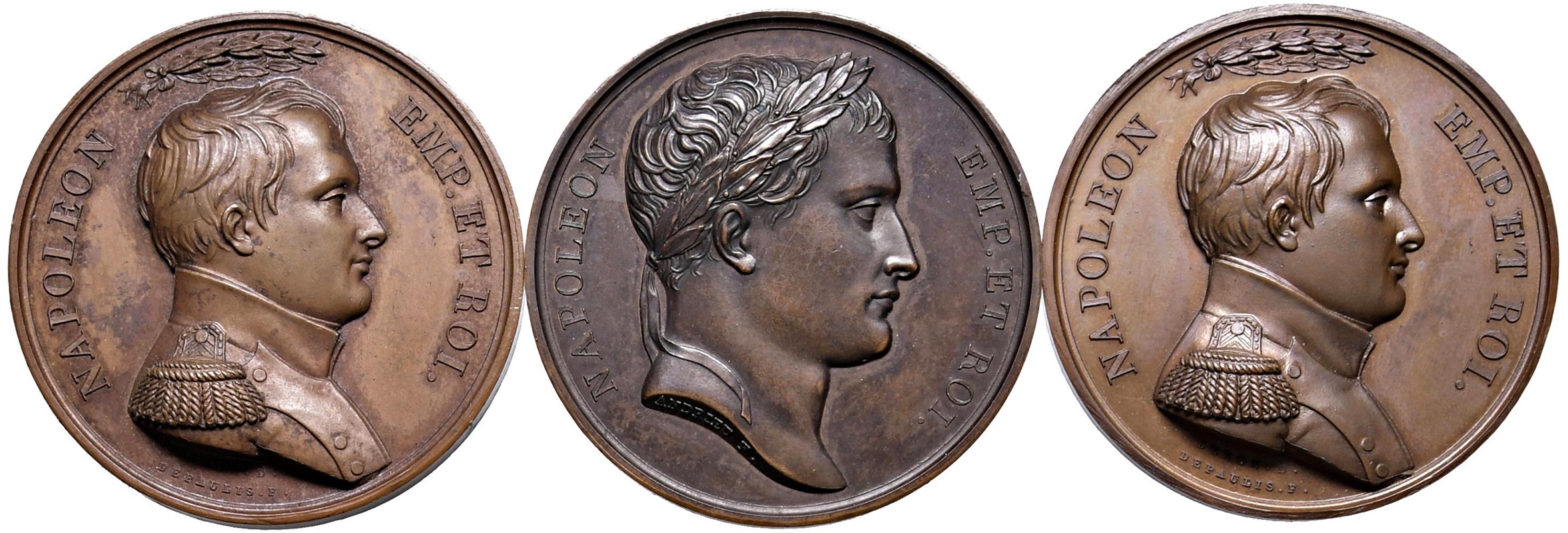 TRE MEDAGLIE NAPOLEONICHE IN BRONZO Battaglia di Champubert 1814 op. Brenet-Depaulis gr. 37,29 mm. 40; Campagna della Marna e dell’Aube op. Andrieu-Brenet gr. 41,00 mm. 40; Resa di Parigi agli alleati 1814 op. Depaulis-Brenet gr. 37,50 mm. 40 Ae SPL/FDC EF/MS (3)