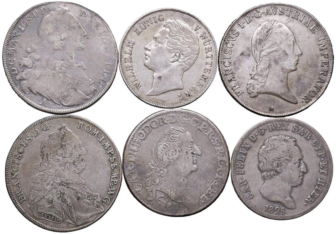 VARI STATI. QUATTRO TALLERI (1763, 1772, 1759, 1829), 2 GULDEN 1849 E 5 LIRE 1825