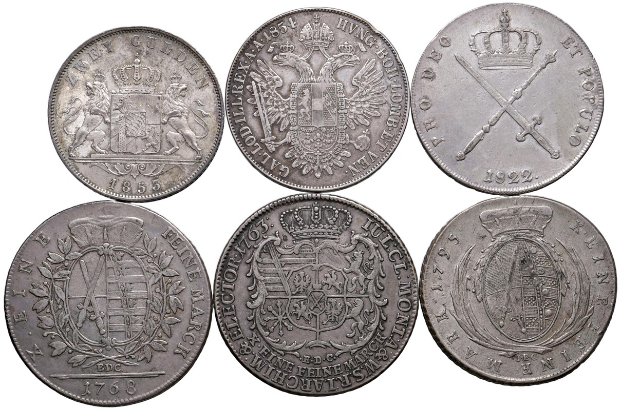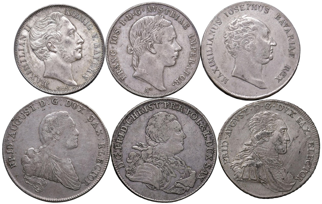Germania (Tallero alla corona di Massimiliano Giuseppe 1822; Tallero di Federico Augusto III 1763; 1768; 1795; 2 Gulden di Massimiliano II 1865); Austria (Tallero di Francesco Giuseppe 1854)