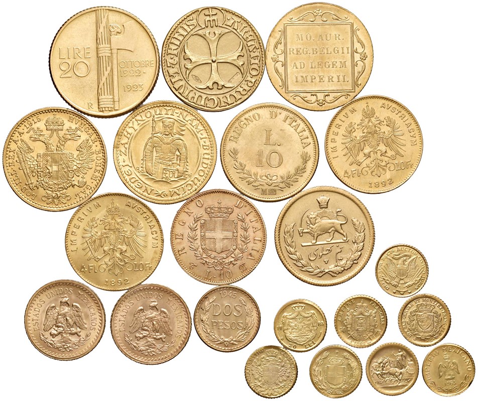 VARI STATI. VENTUNO MONETE IN ORO. MOLTE RIPRODUZIONI MODERNE.