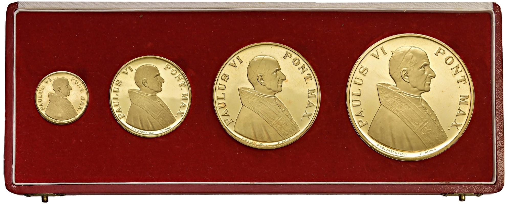 VATICANO. EMISSIONE COMMEMORATIVA DEL PELLEGRINAGGIO DI PAOLO VI IN TERRASANTA 1964 OPUS COLOMBO & MINA COMPOSTA DA QUATTRO MEDAGLIE IN ORO Au 900 tot gr. 198,21 FS Proof (4)