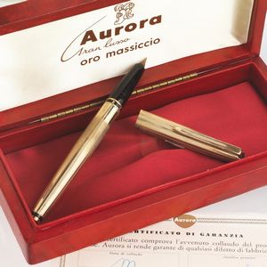 AURORA GRAN LUSSO PENNA STILOGRAFICA fusto scanalato placcato in oro, impugnatura in resina nera, pennino misura [..]