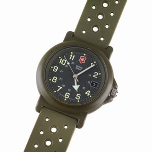 SWISS ARMY OROLOGIO DA POLSO cassa in plastica di colore kaki, fondello serrato a vite, quadrante nero, numeri [..]