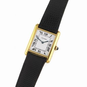 CARTIER TANK N. 4 022XX cassa di forma placcata in oro, fondello serrato con viti, corona con pietra cabochon [..]