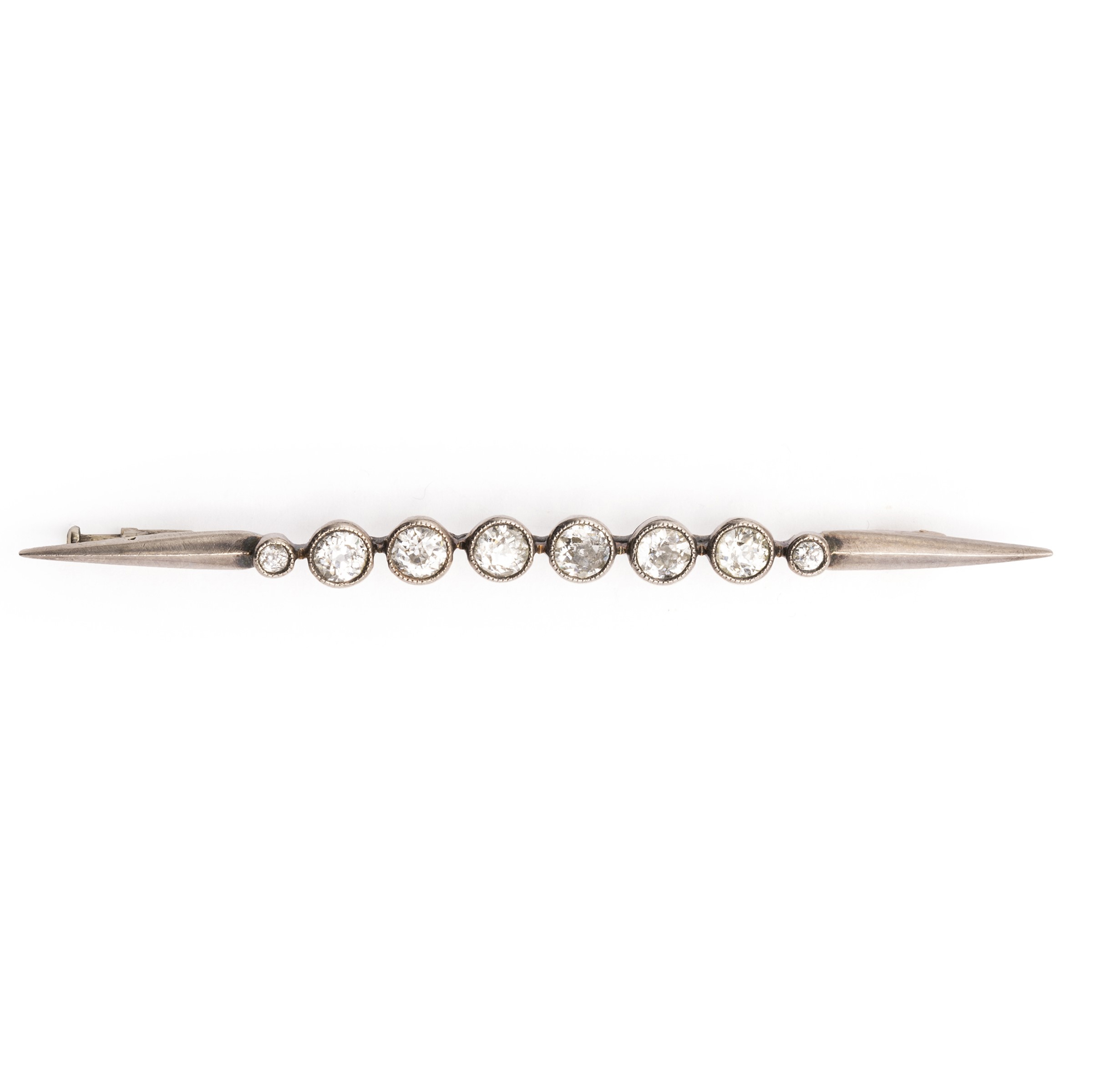 Antica spilla a barretta in oro argento e diamanti